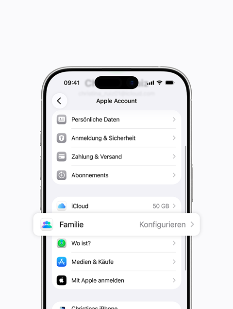 Wenn deine Kinder deinen Apple Account nutzen, können sie auf deine persönlichen Inhalte, einschließlich Nachrichten und Fotos, zugreifen. Außerdem kannst du dann nicht alle verfügbaren Features der Familie nutzen.