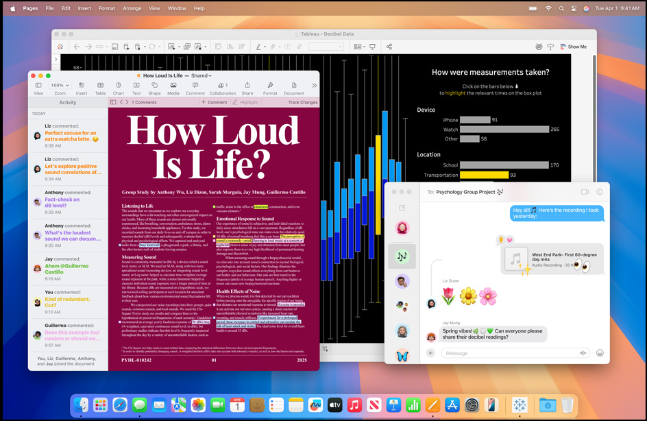 Group apps together for each class and quickly switch between projects with Stage Manager. Or use window tiling to effortlessly arrange windows into side-by-side tiles on your desktop.