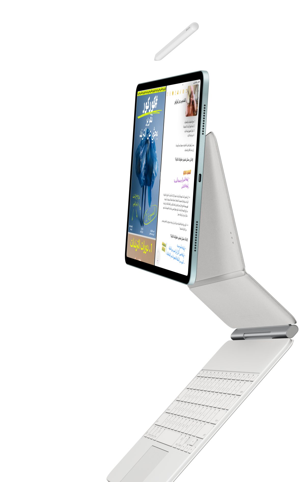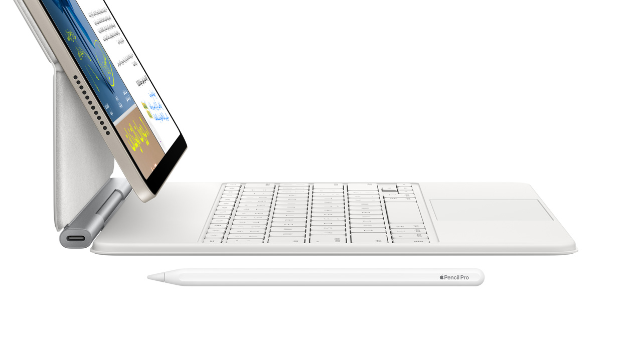 جهاز iPad Air يتصل بلوحة مفاتيح ماجيك وقلم Apple Pro