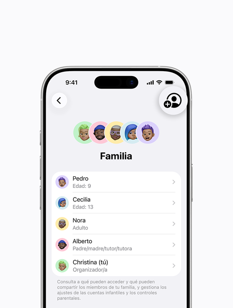Abre Ajustes. Toca tu nombre, seguido de Familia. Toca el icono Añadir Miembro de la Familia arriba a la derecha. Después, toca Crear Cuenta para Niños y sigue las instrucciones en pantalla.