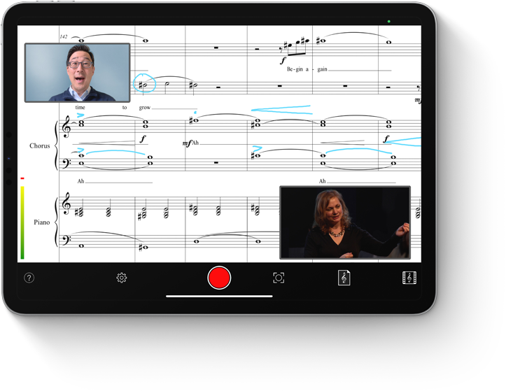 iPad Pro。Kim博士は、人々が集い、コラボレーションし、つながりを感じるためのiPadOSアプリを開発しました。このVirtual Choristerアプリは、世界中のミュージシャンによるパート別の録音や演奏を取り込み、バーチャルなアンサンブルを生み出し