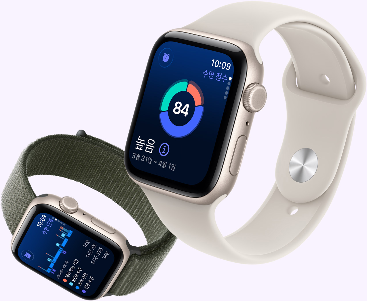 심박수, 호흡수, 손목 온도, 수면 시간을 비롯한 밤사이의 건강 데이터를 손목에서 바로 확인해 보세요. 수치가 평상적인 범위를 벗어나면 알림도 받을 수 있습니다.8