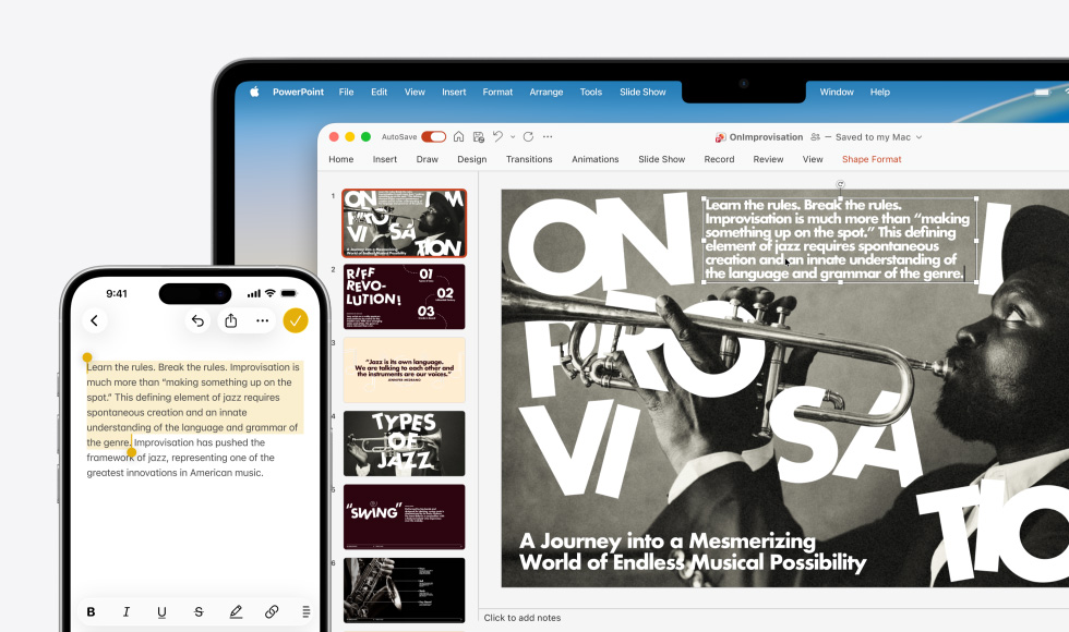 O MacBook Air de 13 polegadas é o portátil mais versátil de sempre e o modelo de 15 polegadas dá‑lhe mais espaço de ecrã para realizar várias tarefas em simultâneo.3