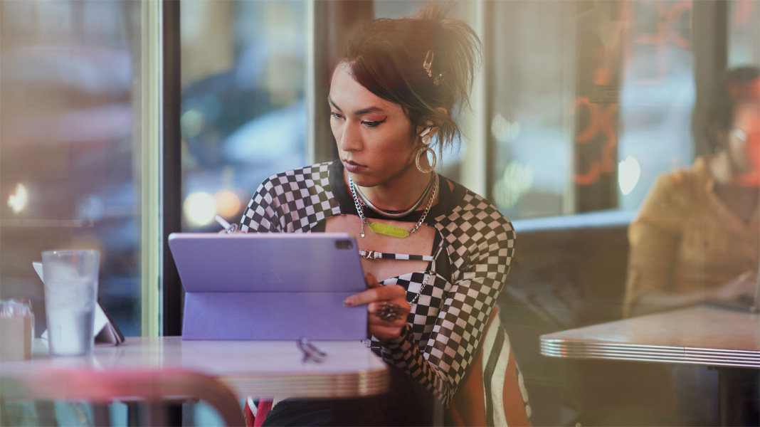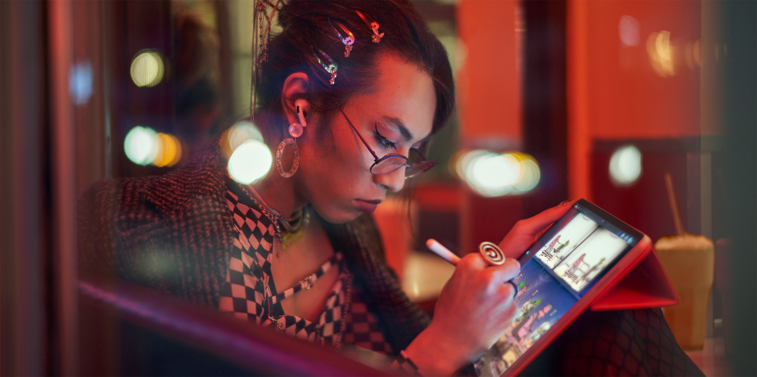 “I love having different screen sizes for different levels of engagement,” they say, using MacBook with Photoshop for design work, and iPad with Procreate for illustrations and sketching. “And with Apple Pencil’s responsiveness and organic feel, I’m not missing anything from a traditional pen or pencil.”