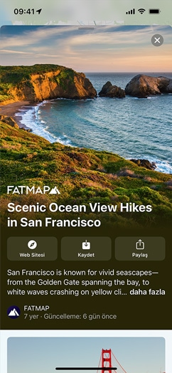 Rehberler, tüm dünyadaki şehirlerde görülecek ve yapılacak muhteşem şeyleri keşfetmenize yardımcı oluyor.4 Özel olarak hazırlanan 1000’e yakın rehbere erişmek ve dikkatinizi çekenleri bulup kaydetmek için Rehberleri Keşfet düğmesine dokunmanız yeterli. Özel Düzenlenmiş Rehberler, yeni yerler eklendiğinde otomatik olarak güncelleniyor. Böylece her zaman en yeni önerileri görebiliyorsunuz. Ayrıca dilerseniz kendi Rehberler kategorinizi oluşturup arkadaşlarınız ve ailenizle paylaşabiliyorsunuz.